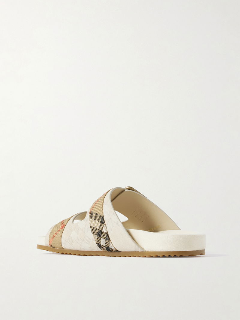 Checked Canvas Jacquard-trimmed Suede Sandals
