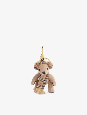 Burberry's bag charm is a house signature. Made from wool and cashmere-blend, the playful mascot hangs from a gold-tone clasp – the fastening is engraved with the brand's logo.
