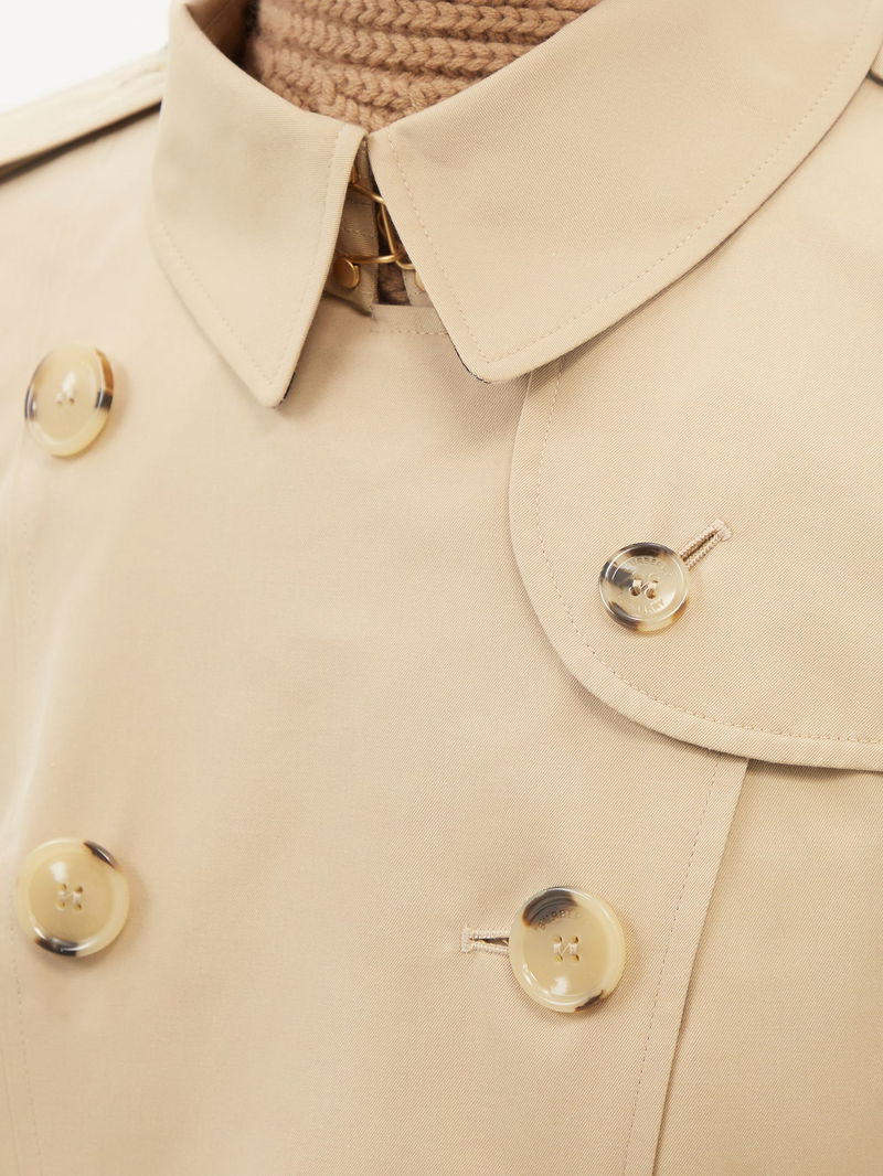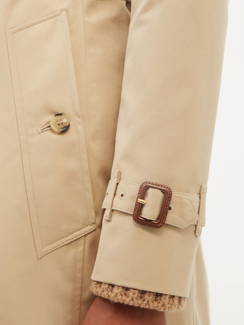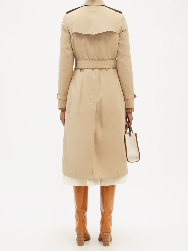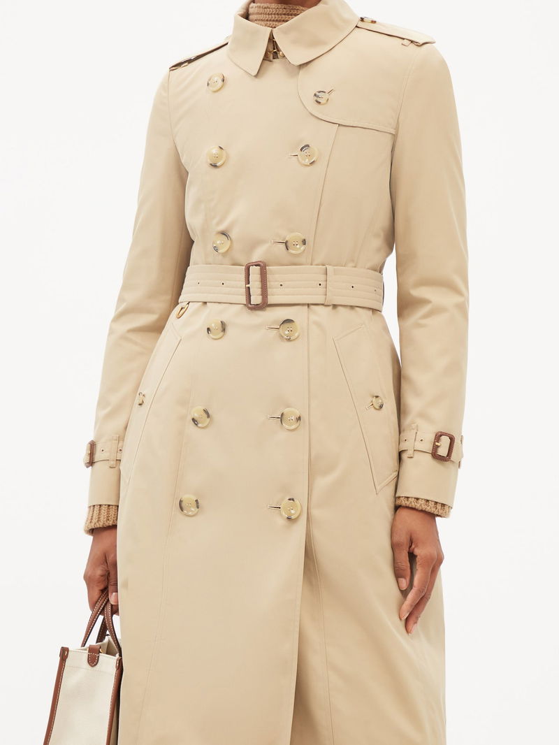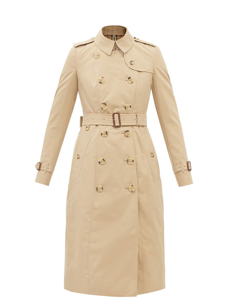 Crafted in the UK from cotton gabardine with a spread collar, adjustable belt and Vintage-check lining, this beige Chelsea coat neatly summarises Burberry's refined codes.