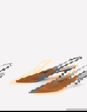 Closed round toe, sling back strap, all-over check pattern, flat sole