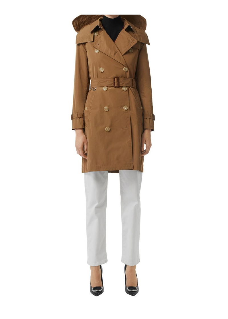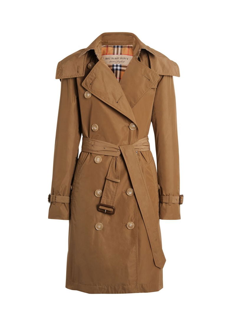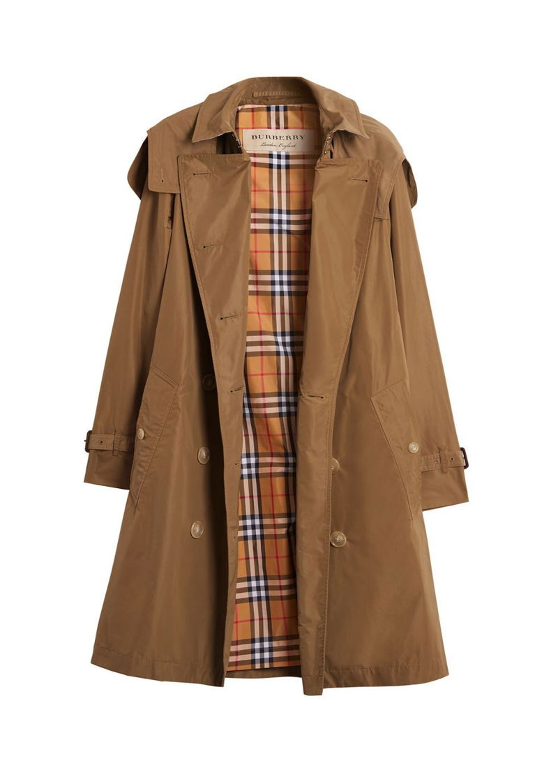 A taffeta trench coat in Burberry’s classic Kensington fit, updated with a detachable hood.