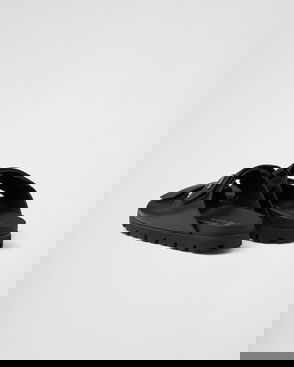 A pair of Italian-made slides in nappa leather debossed with the Equestrian Knight Design.