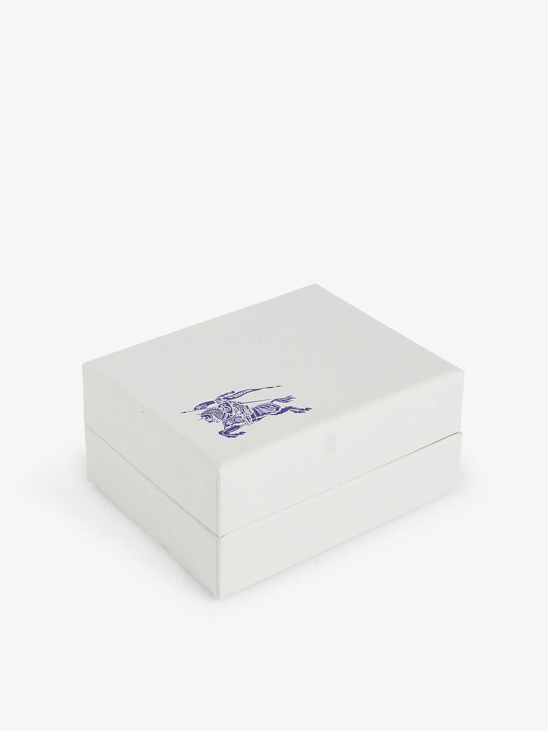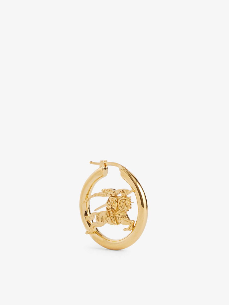 Burberry Yellow Gold-Plated Brass Hoop Earrings. Latch-back fastening. Hoop design, Equestrian Knight Design motif at centre, engraved logo at back, polished finish.