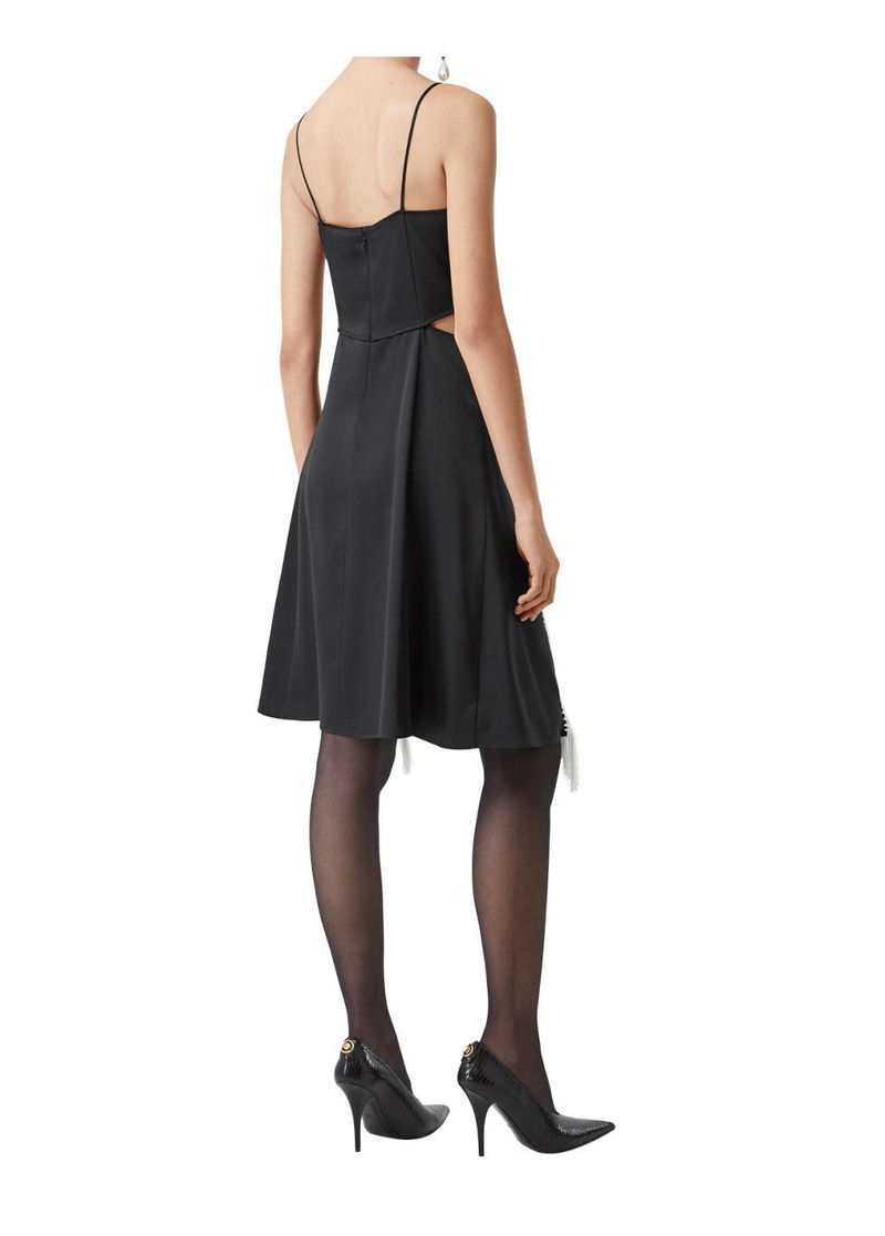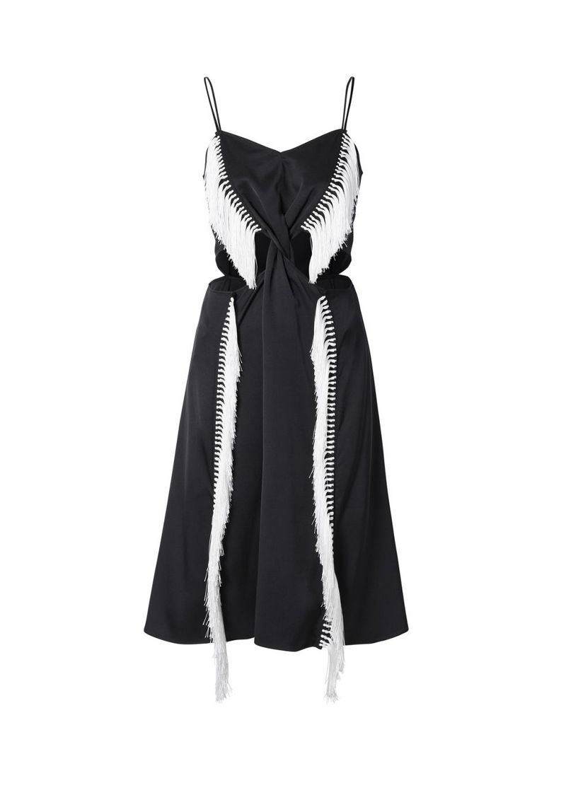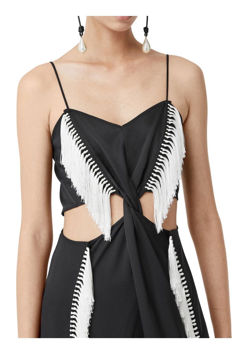 An Italian-made slip dress in smooth silk satin, defined with a knotted waist, cut-out panels and fringe detailing.
