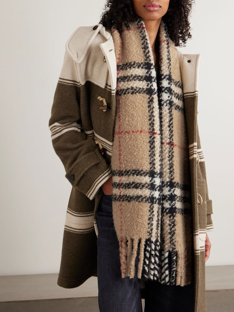 Fringed Checked Alpaca And Wool-blend Bouclé Scarf