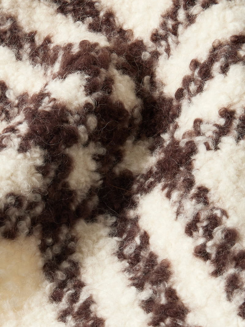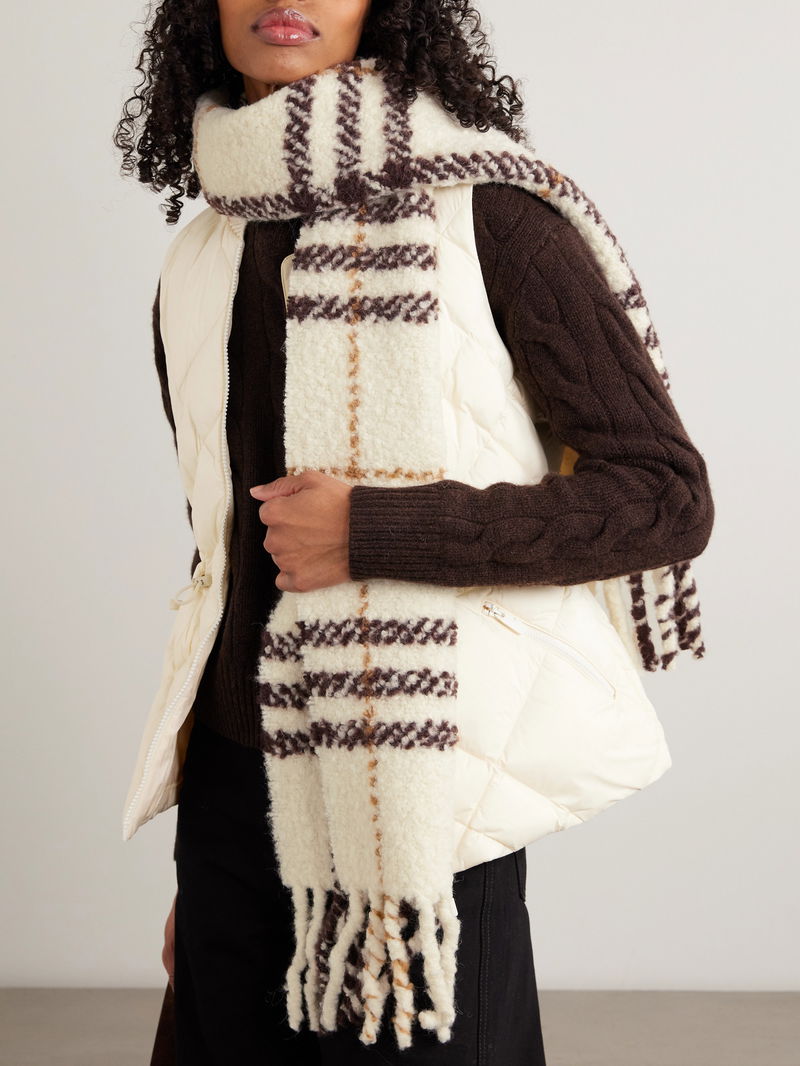 You can rely on Burberry to reinterpret its iconic signatures in innovative ways – often experimenting with textile and character. This scarf is knitted from alpaca-blend bouclé in the recognizable check and edged with swishy fringing.