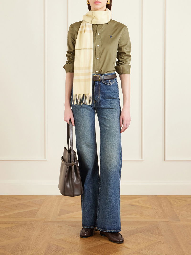 This scarf is patterned with Burberry's iconic 'Nova' check. It's made from super soft cashmere and has fringed ends for added texture. Try it around your head to switch up the styling.