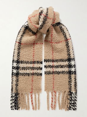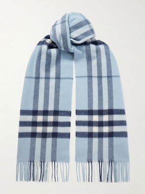 Burberry's scarf is patterned with a muted gray version of the brand's signature checks, a motif first introduced in 1924. It's spun from lightweight wool and traced with a wispy fringe. Loop it around your neck or drape it over your shoulders as a wrap.
