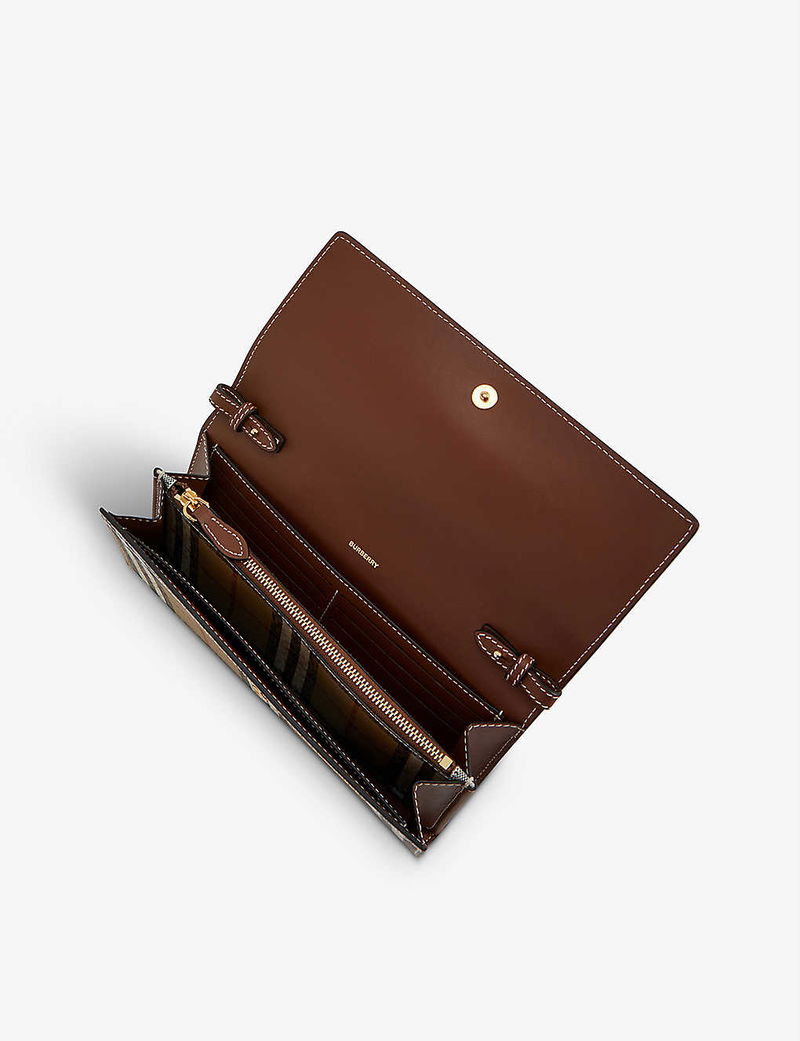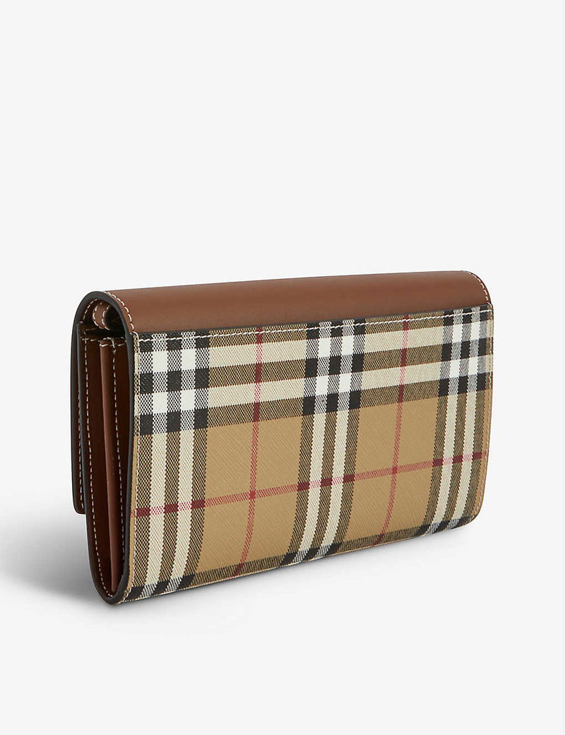 It seems that Thomas Burberry made a great decision when choosing the label’s distinguished check as its calling card nearly a century ago; today, current Creative Director Riccardo Tisci finds endless uses for it. The latest? The Hannah wallet with a detachable strap. Crafted from canvas (made with at least 30% bio-based materials) and leather, it’s swathed in a simplified version of the heritage motif and shaped to a sleek silhouette that’s kept pared-back from fussy details.