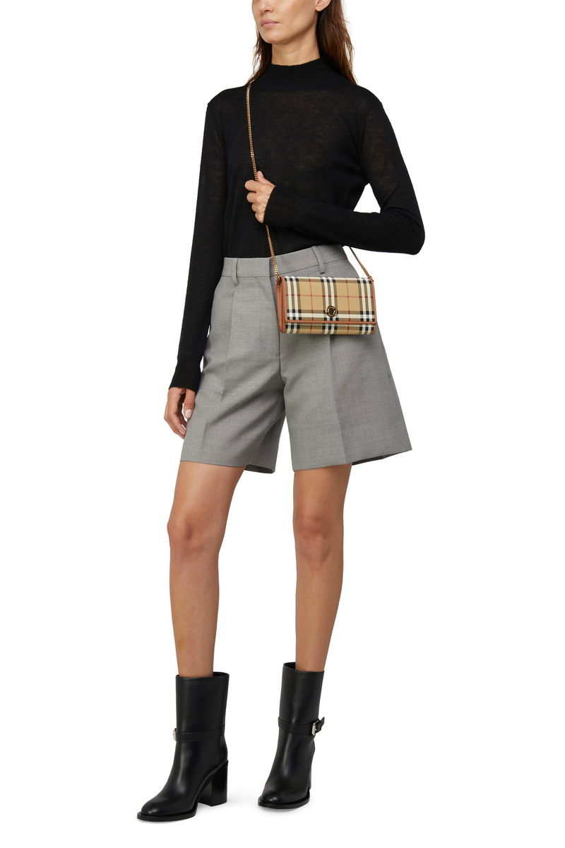 Mini bag. Worn on the shoulder or crossbody. Detachable chain strap. Zippered interior pocket and patch pocket.