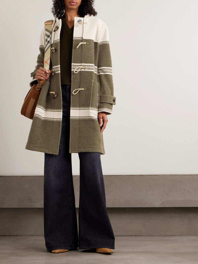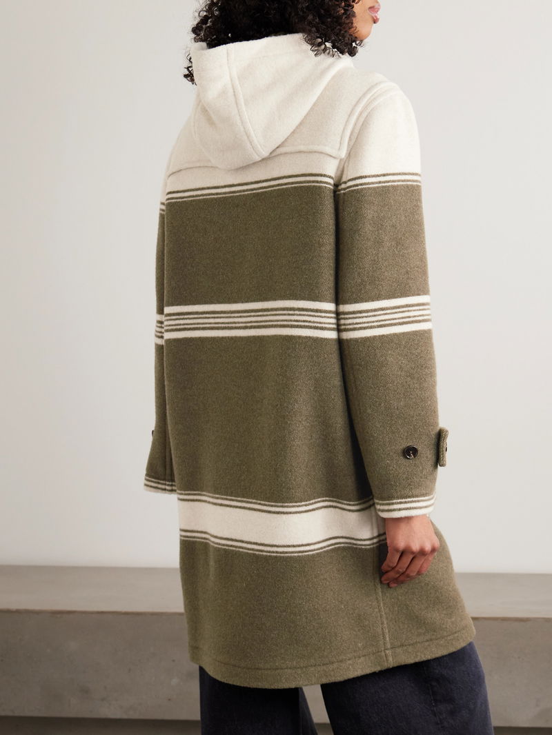 Hooded Striped Wool And Cotton-blend Coat