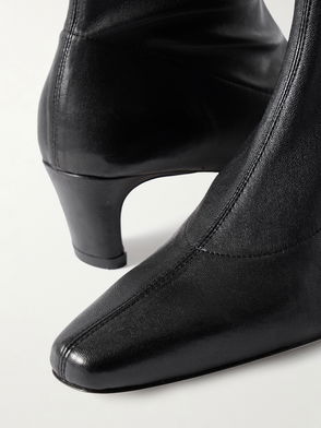 The chunky profile of Burberry’s black Hurr boots is the union of rebellious and outdoors inspirations. They’re made from leather with a structured upper and a supple, stretch panel around the mid-calf ankle, then are set on a statement flatform tread sole.