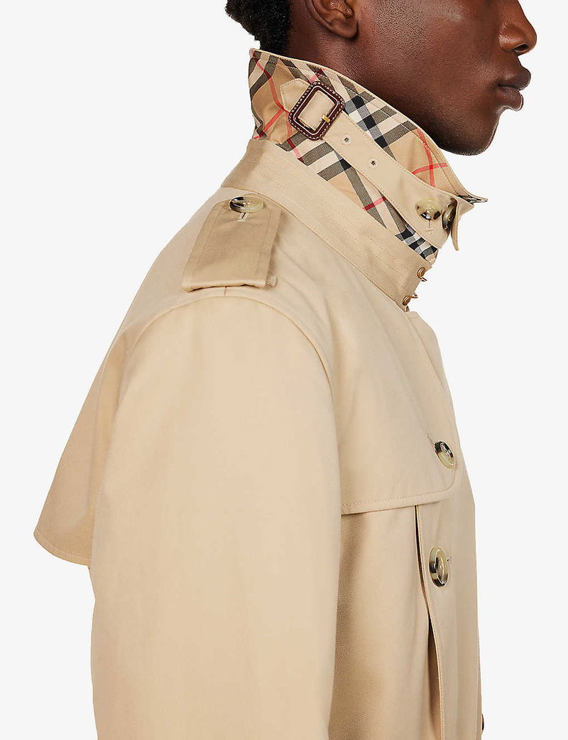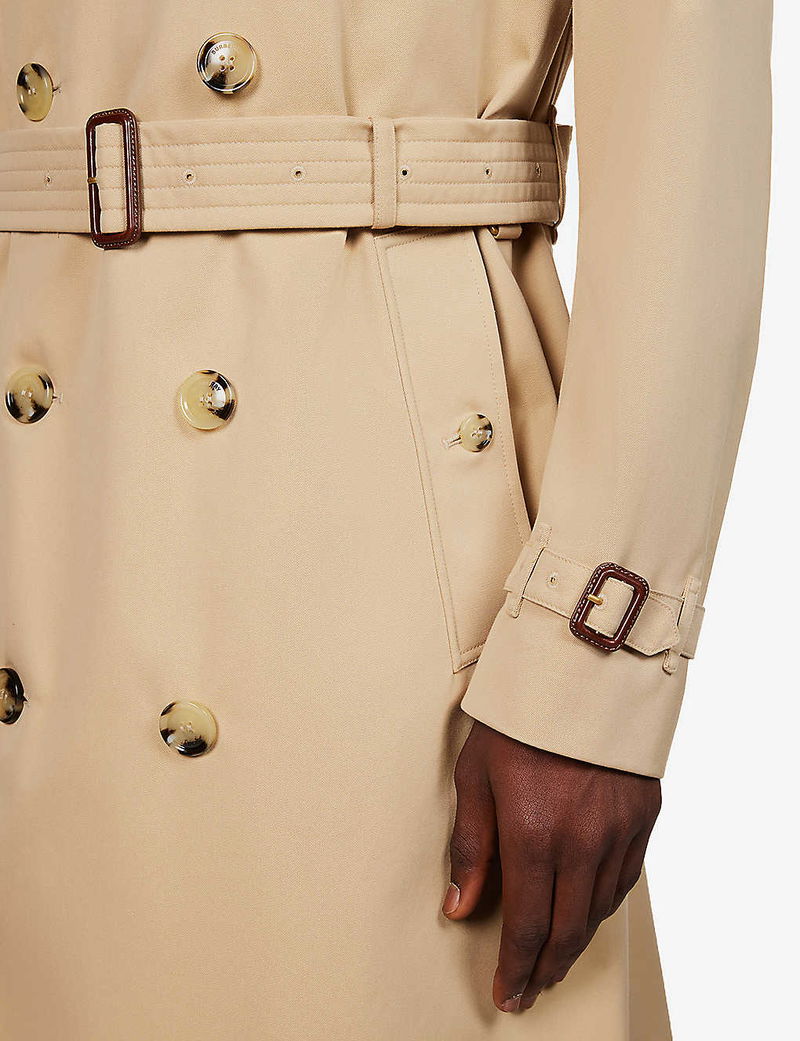 We won’t waste our time telling you about Burberry’s heritage when it comes to trench coats; the label has long been synonymous with the iconic British layer. This iteration dubbed the Kensington (after a particularly swish London neighbourhood) is cut entirely from a compact cotton twill, so it’s as lightweight as it is hard-wearing. Fastening through a double-breasted front, the slender silhouette is cinched with a staple belt – and licked with signature checks at the lining, of course.