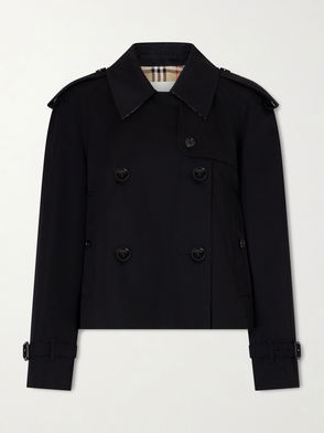 Originally designed by Burberry’s historic founder, this black Kensington trench coat is a modern rendition on the styles developed for military use. It’s crafted from water-repellent taffeta to a mid-length silhouette with a detachable hood and spread collar, then cinches at the waist using a buckled strap and vented at the back for ease of movement. Style it as the sophisticated finish to everyday separates.