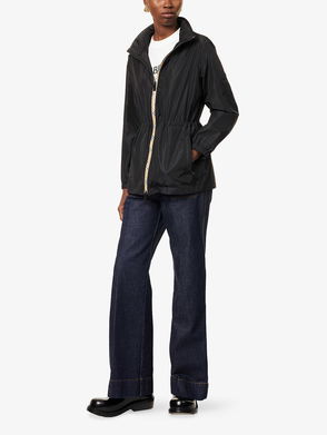 Size & Fit Brand Bio A hooded jacket woven in lightweight nylon cut to a relaxed fit with B-cut zip pulls. The design is screen-printed at the back with our Knight stamp - an archival motif first seen on Burberry bags in the 1980s. Two-way zip closure Drawcord hood Side zip pockets Elasticated cuffs and hem Silicone patch with Equestrian Knight Design at sleeve Comes with a garment bag Relaxed fit: a looser cut than our regular fit. Length: 54cm/21.3in (size UK S) Models height: 180cm/5ft 11in. Model wears size UK S 100% polyamide Hand wash Imported