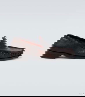 Italian-made loafers in shiny calf leather. The wide strap features a shield plaque engraved with the Equestrian Knight Design.