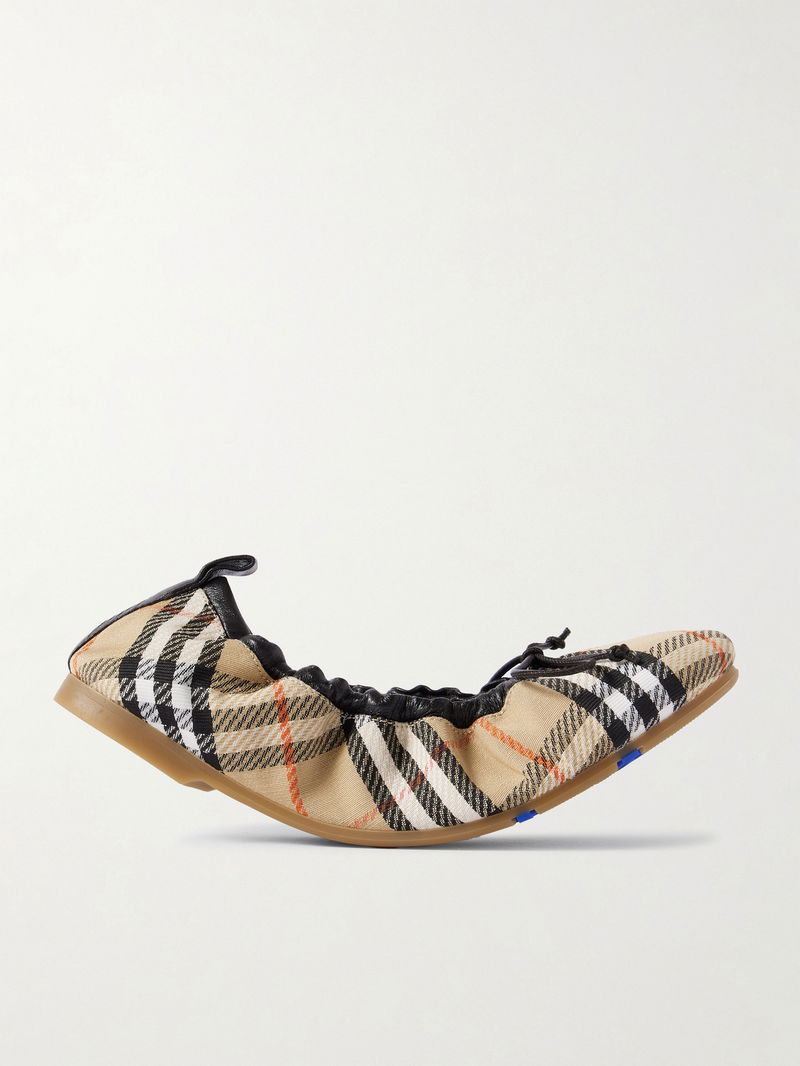 Leather-trimmed Checked Canvas Ballet Flats