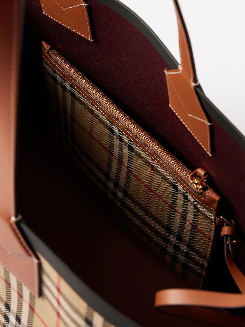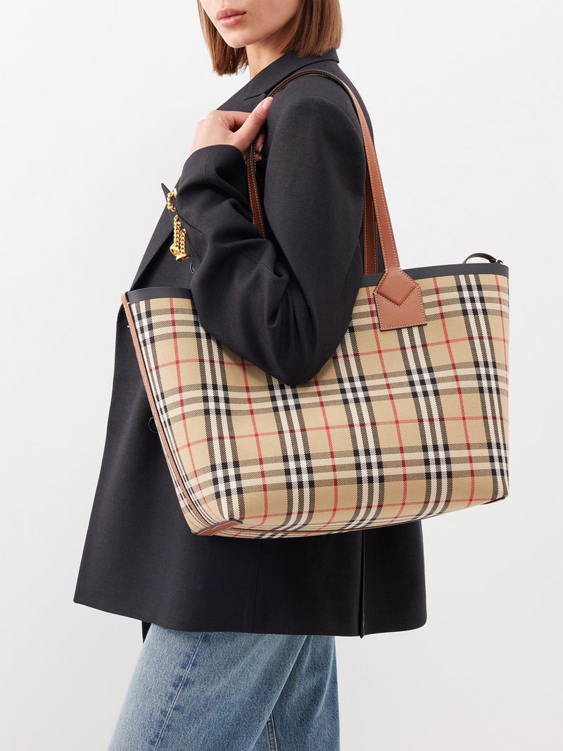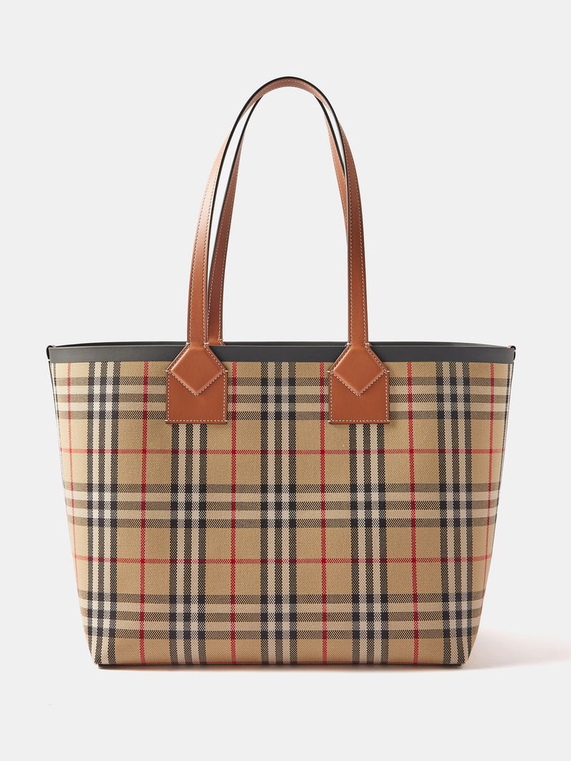 Burberry's beige check has been a pillar of the house aesthetic since the 1920s, rendered in cotton canvas for this London tote bag.