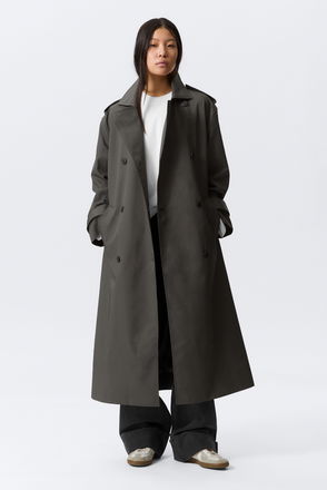 Size & Fit Brand Bio Adding volume to our signature rainwear the Fitzrovia trench coat is made in Yorkshire from water-resistant gabardine treated for a soft finish. The A-line style is cut to a relaxed fit featuring wider sleeves and a fuller skirt for a feminine silhouette. Raglan construction gives a softer line at the shoulders while an archival trench inspires the curlicue shape of the pockets. Inside is Burberry Check cotton lining in our signature sand beige. Double-breasted button closure Hook-and-eye collar closure Throat latch Epaulettes B buckle belt Side button welt pockets Belted cuffs Back button vent Burberry Check lining and undercollar Comes with a garment bag Relaxed fit: a looser cut than our regular fit. Length: 115cm/45.3in (size UK 8) Models height: 177cm/5ft 10in. Model wears size UK 8 Outer: 100% cotton Lining: 100% cotton Sleeve lining: 100% cupro Buckles: 100% calf leather Buttons: buffalo horn Specialist dry clean Made in Yorkshire England