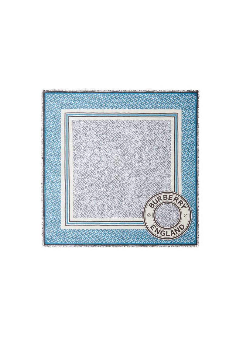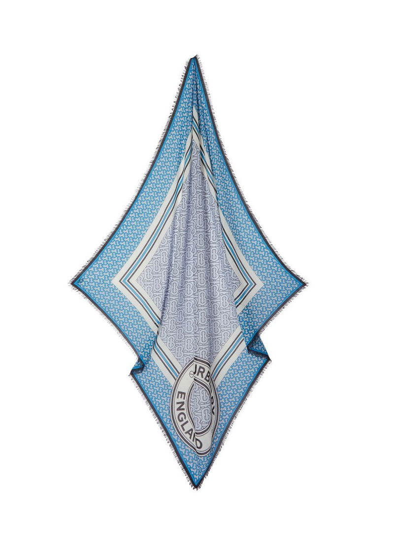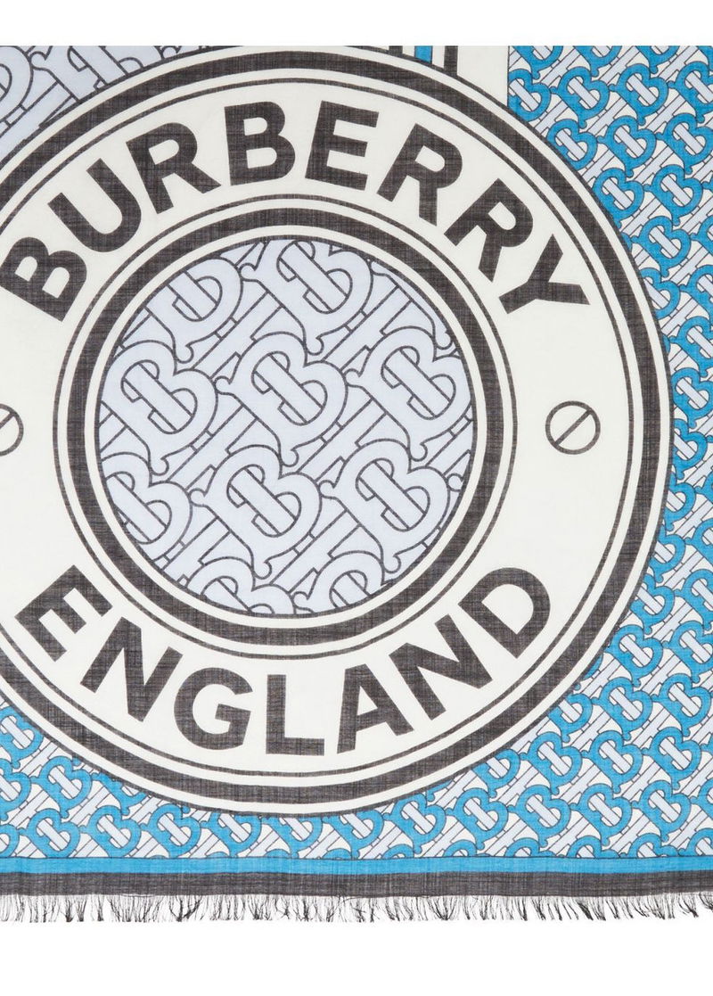An Italian-made wool-silk scarf in a lightweight gauze weave highlighted with contrasting Monogram prints stripes and our logo graphic.