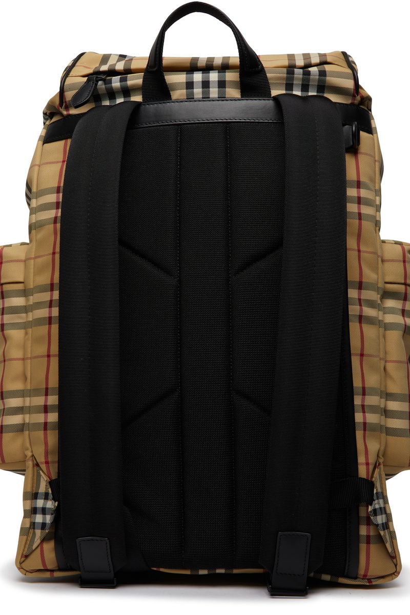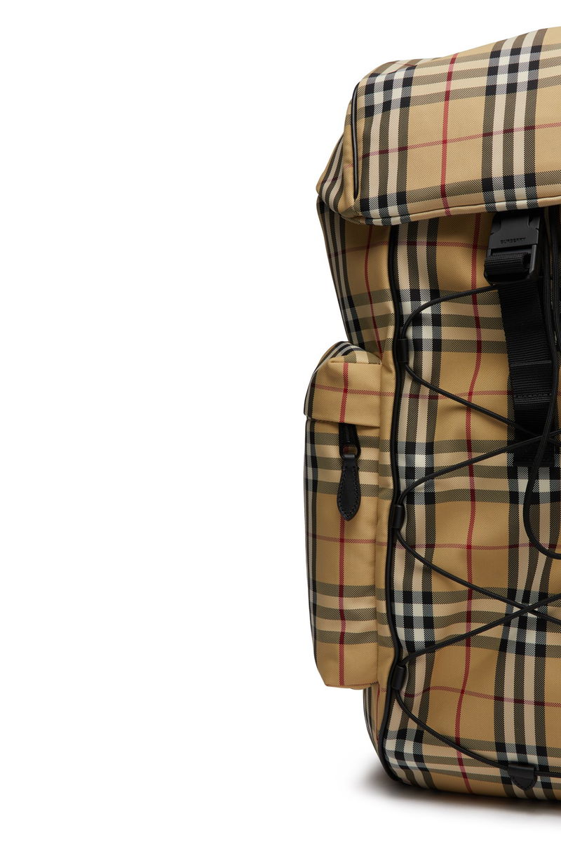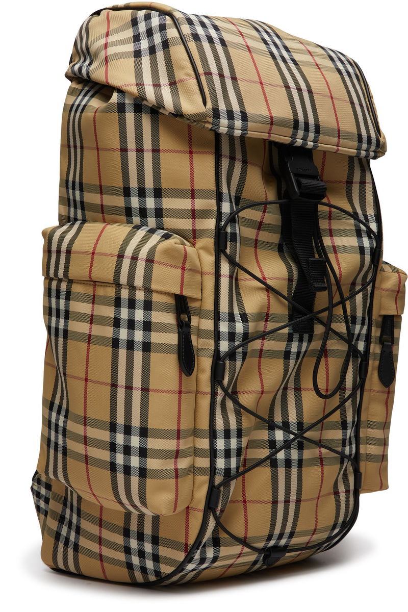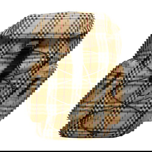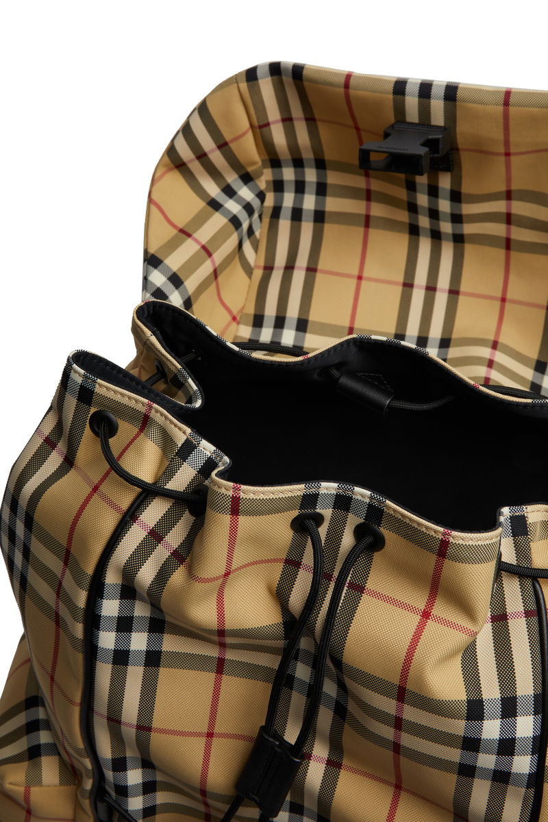 Handle. Shoulder straps. Flap closure. Side pockets. Iconic Vintage check pattern. Can be worn different ways.