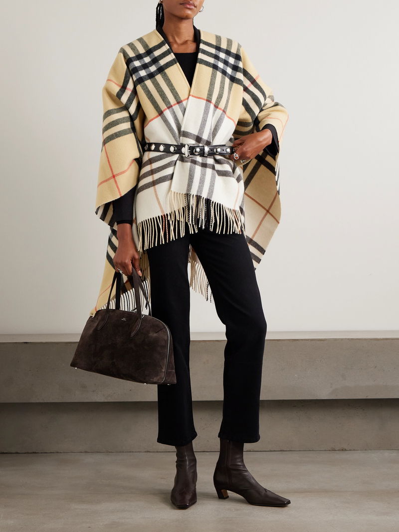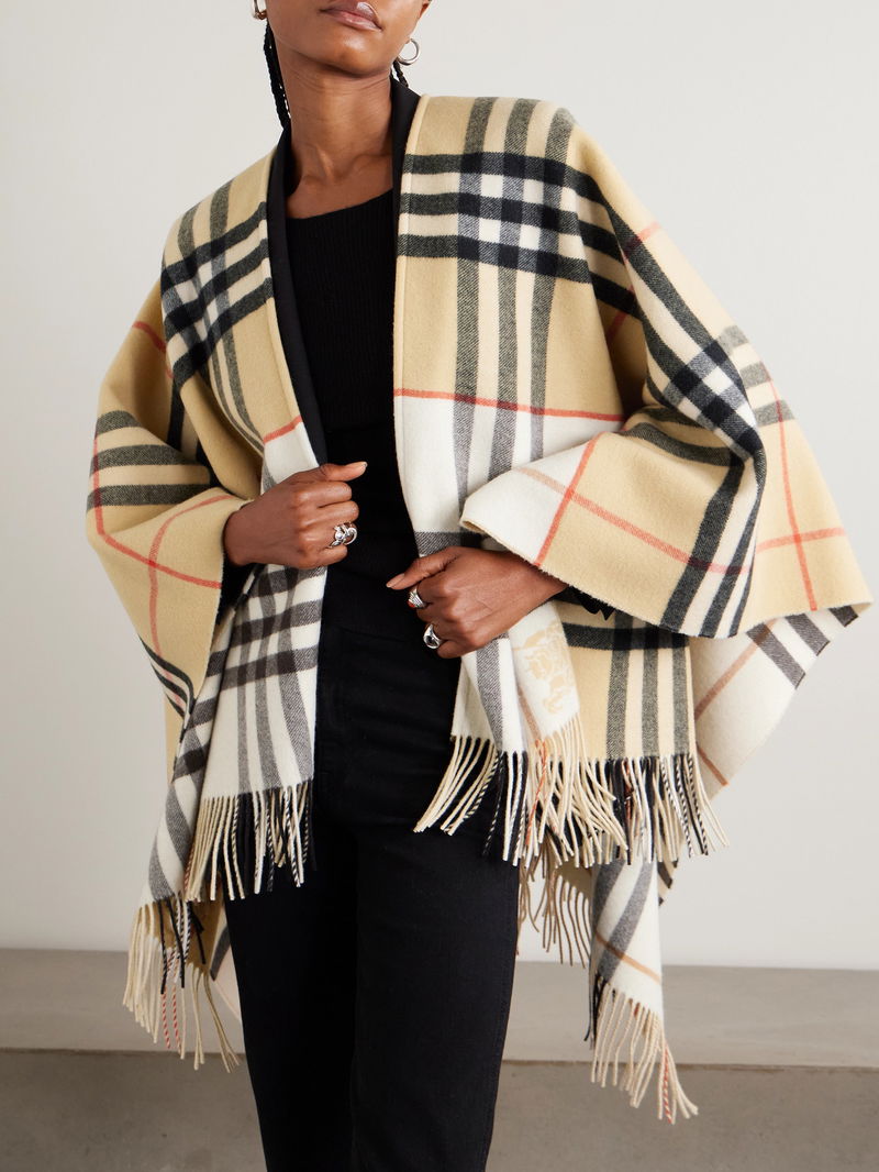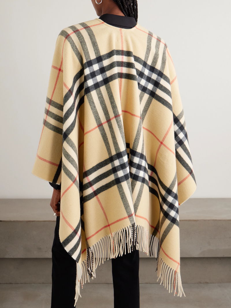 Oversized Fringed Checked Cashmere And Wool-blend Cape