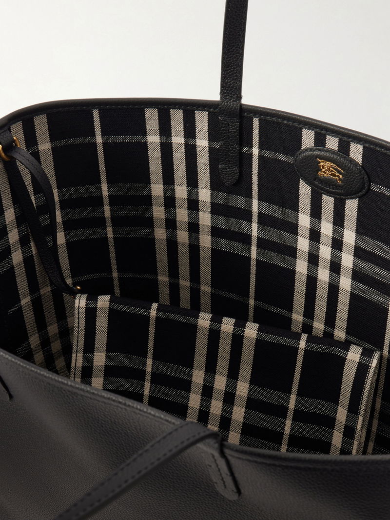 Reversible Leather And Checked Canvas Tote