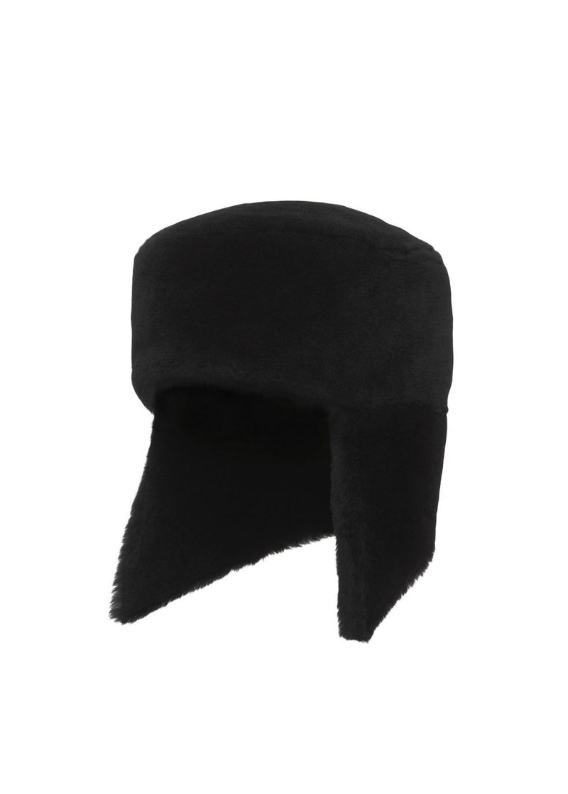 An Italian-made trapper hat with an exaggerated, angular silhouette, elevated in tactile shearling. Cotton twill lines the design.