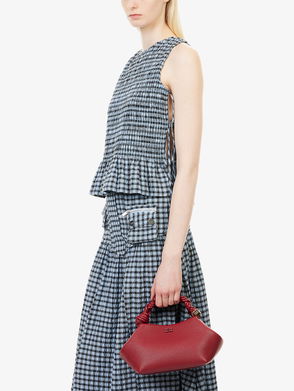 A shoulder bag made in Italy from grainy leather with an embossed check lining. The conical shape curves to fit the body and features a brushed metal Knight buckle to adjust the strap length.