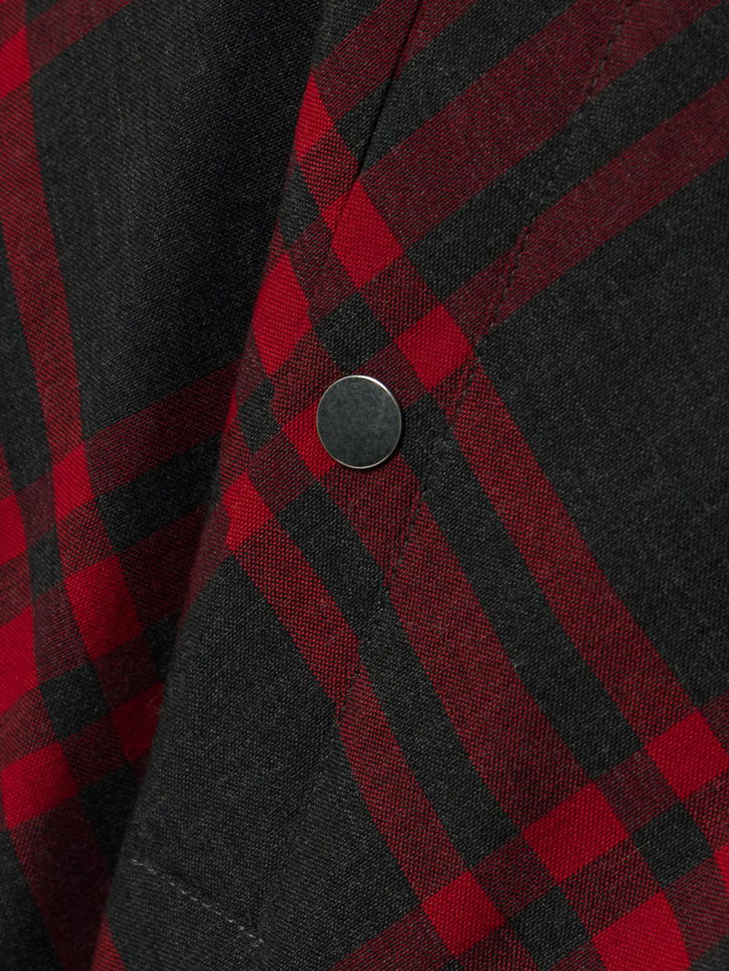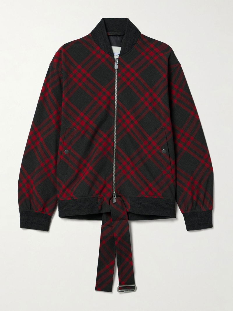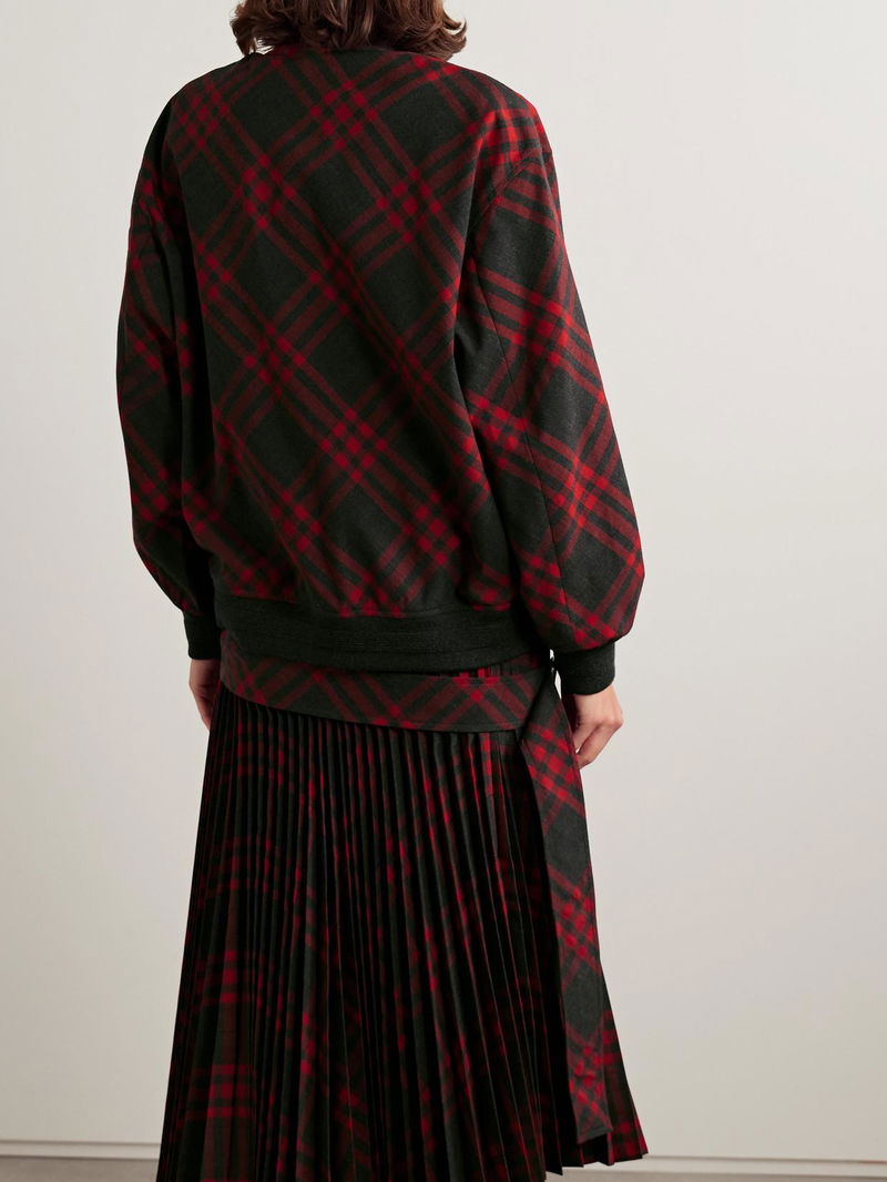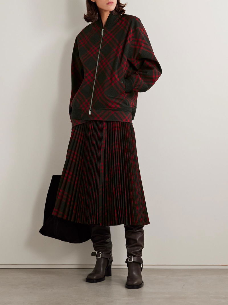 Burberry's jacket is woven with a fresh red and black version of house's iconic checks, which also decorates the coordinating midi skirt.
