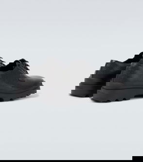 Italian-made Derby shoes in polished leather and Vintage Check cotton, accented with brogue detailing.
