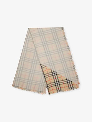 Size & Fit Brand Bio A lightweight wool scarf made in Italy. The design is woven with the Burberry Check. Rectangular Eyelash fringing at the edges 200 x 90cm/78.7 x 35.4in 100% wool Dry clean Made in Italy