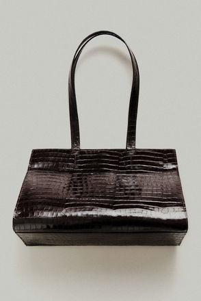 BY FAR is known for small and perfectly formed accessories and this miniature chocolate-brown handbag taps the coveted look. It’s handcrafted from polished crocodile-effect leather and can be carried via the rolled top handle and adjustable, detachable shoulder strap for days on the go.