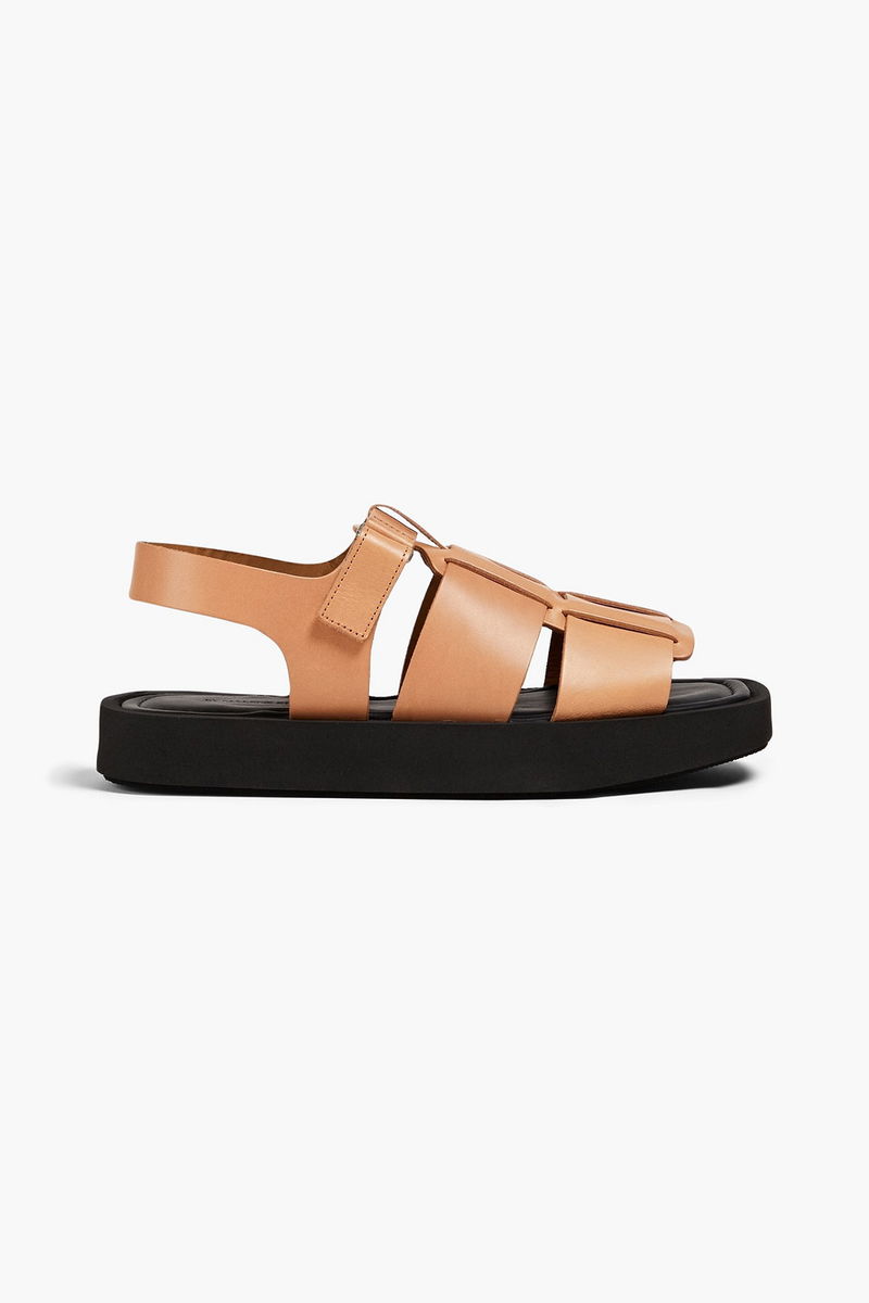 Sandals. Leather. Platform. Open square toe. Velcro® fastening. Rubber sole.