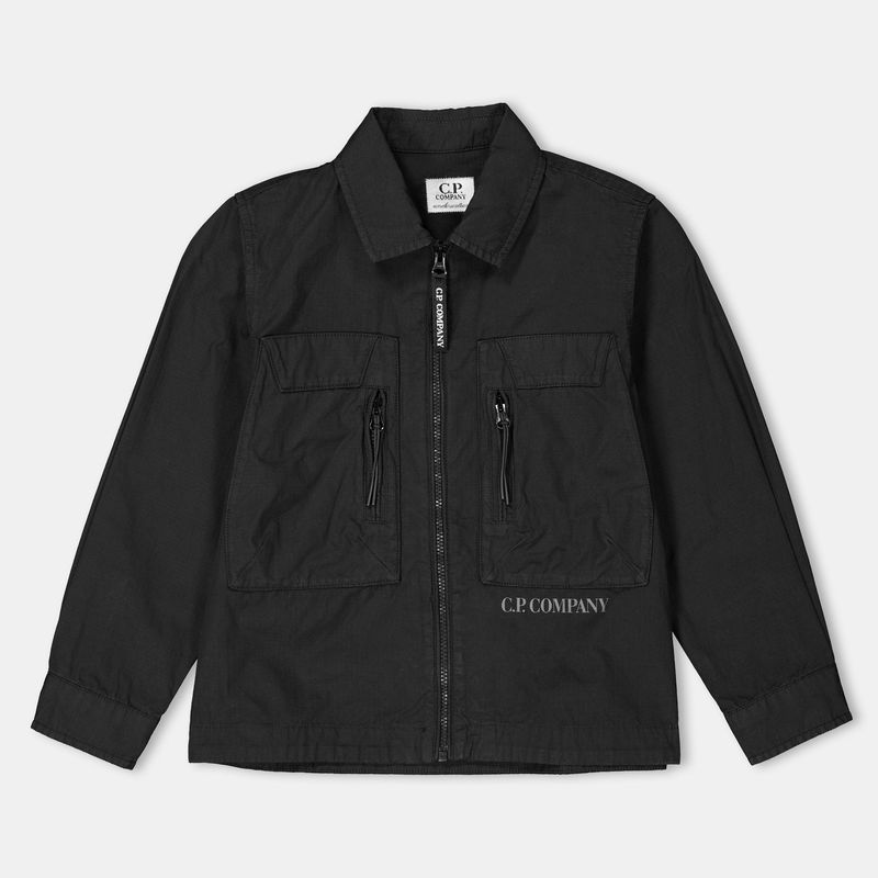 The Kids' Logo Button-Through Overshirt from CP Company offers lightweight utility and detailing. Featuring the brand's well-known lens badge on the sleeve and functional pockets, this overshirt delivers practical style with the durability needed for active children.