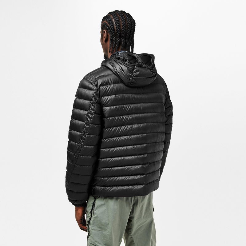 The CP Company D.D. Shell Goggle Hooded Jacket delivers great weather protection with its waterproof, windproof design. This winter coat features the brand's goggle-detailed hood and practical four-pocket design, bringing together Italian fashion with functional warmth in a short puffer style.