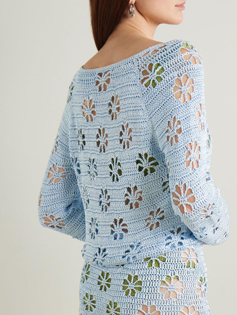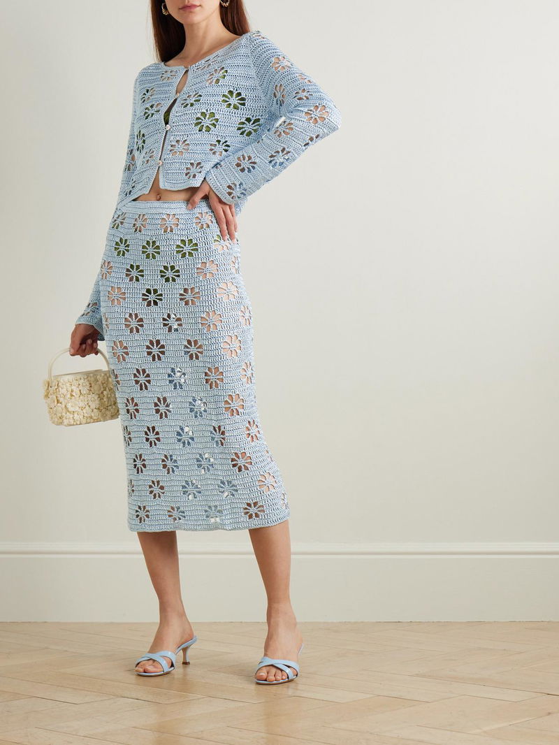 Calle Del Mar's collections embody the ease and carefree spirit of '70s California. This cardigan is designed in a cropped shape and crocheted with dainty floral motifs. Wear yours with high-rise jeans or the matching skirt.
