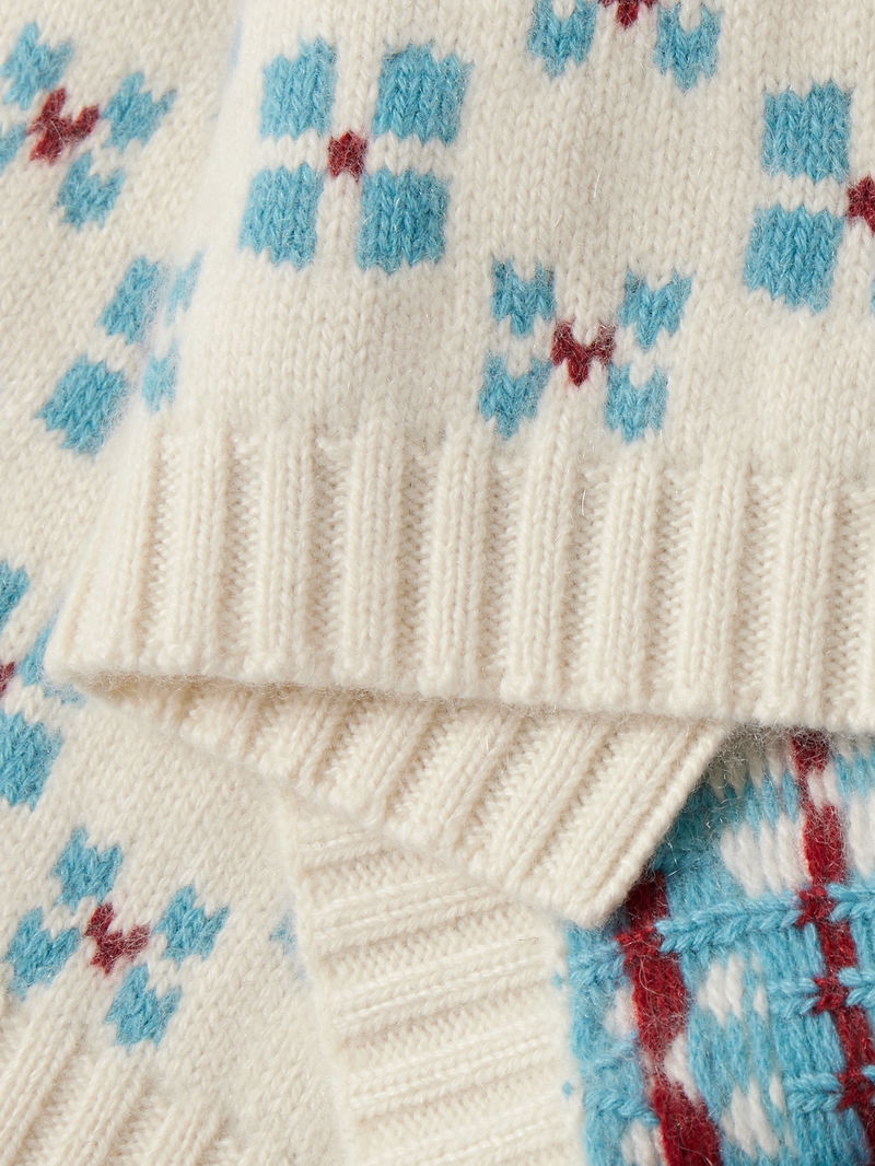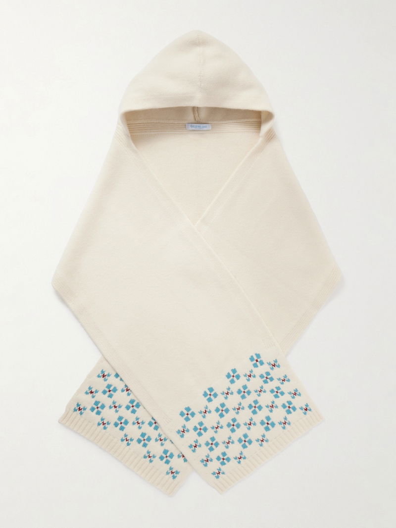 Calle Del Mar's 'Winter' scarf is meant to be worn as part of a cozy set with the matching sweater and pants in our edit. Made from soft cashmere, it's knitted with a classic Fair Isle motif and has a convenient hood.