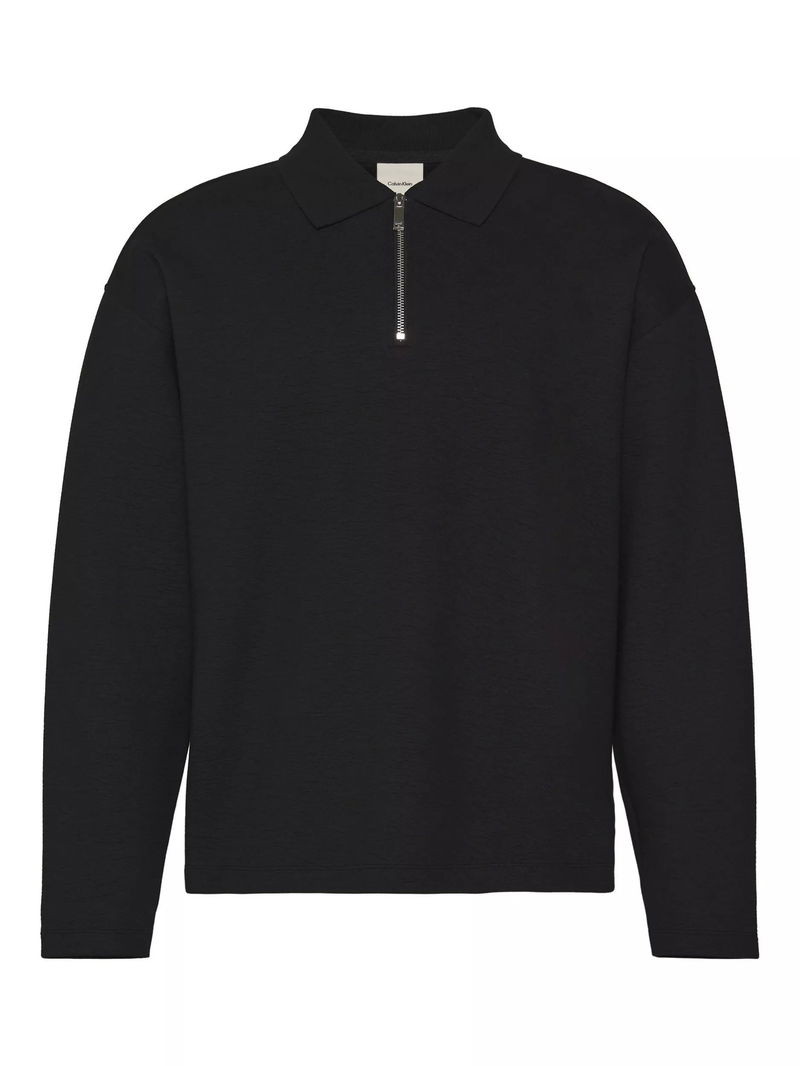 Cotton Blend Crinkle Crepe Quarter-Zip Sweatshirt, Black