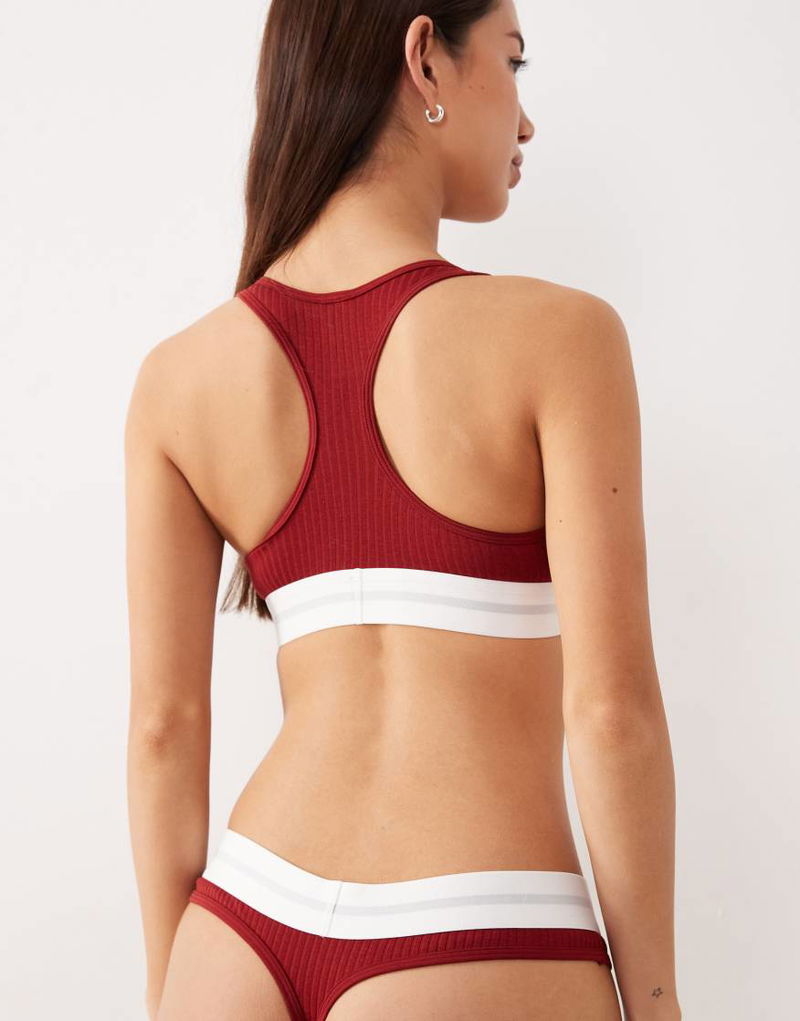 Cotton Modal Rib Thong In Burgundy