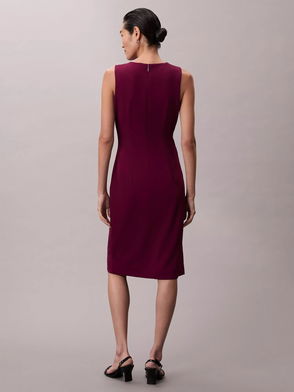 Indulge in sophistication and elegance with the Calvin Klein Crepe Shift Dress. With a brand that resonates with timeless style and impeccably tailored designs, Calvin Klein is a beacon of luxury in fashion. This exquisite dress, crafted from a luxurious wool blend, combines comfort and refinement seamlessly, ensuring you feel empowered and confident. The knit fabric of the dress provides a figure-flattering slim fit, accentuating your natural curves. Its knee-length silhouette exudes sophistication, making it versatile for professional workwear and glamorous evening attire. The crew neck and sleeveless design enhance the dress's polished aesthetic, while the slip-on style ensures effortless elegance. Impeccable attention to detail is evident in the single pleat detail to the front and rear, adding a touch of texture and dimension to the dress. Adorning the nape of the neck is a silver-tone logo plaque, embroidered with finesse, showcasing the brand's commitment to excellence. The Calvin Klein Crepe Shift Dress offers limitless styling options, allowing you to create various looks. Whether paired with pumps and a blazer for a business meeting or statement jewellery for a night out, this dress is a versatile must-have.