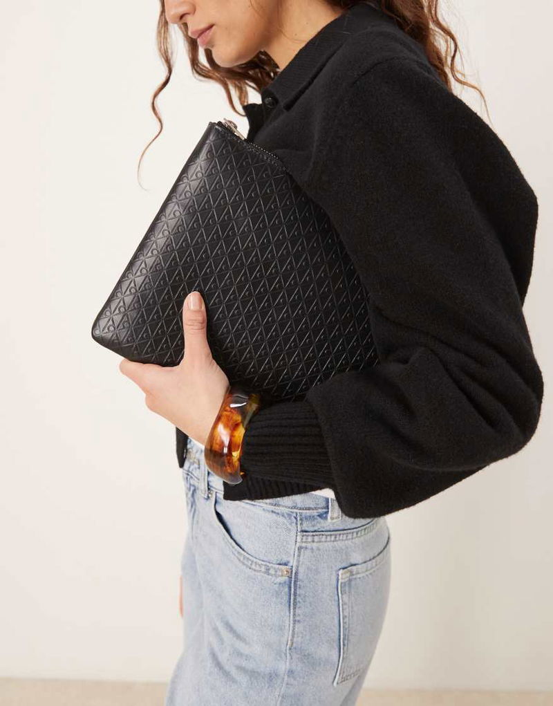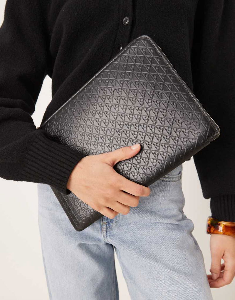 Emblem embossed pouch.
