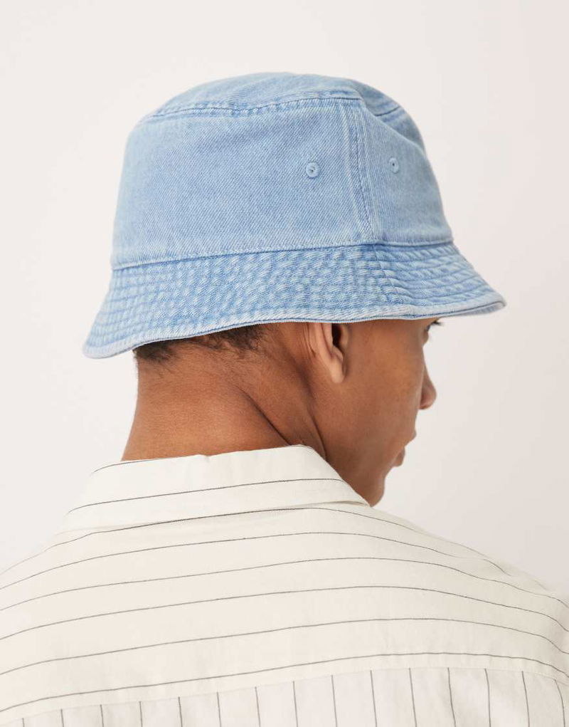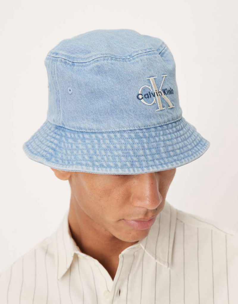 Embroidered Monologo Denim Bucket Hat In Light Wash Blue