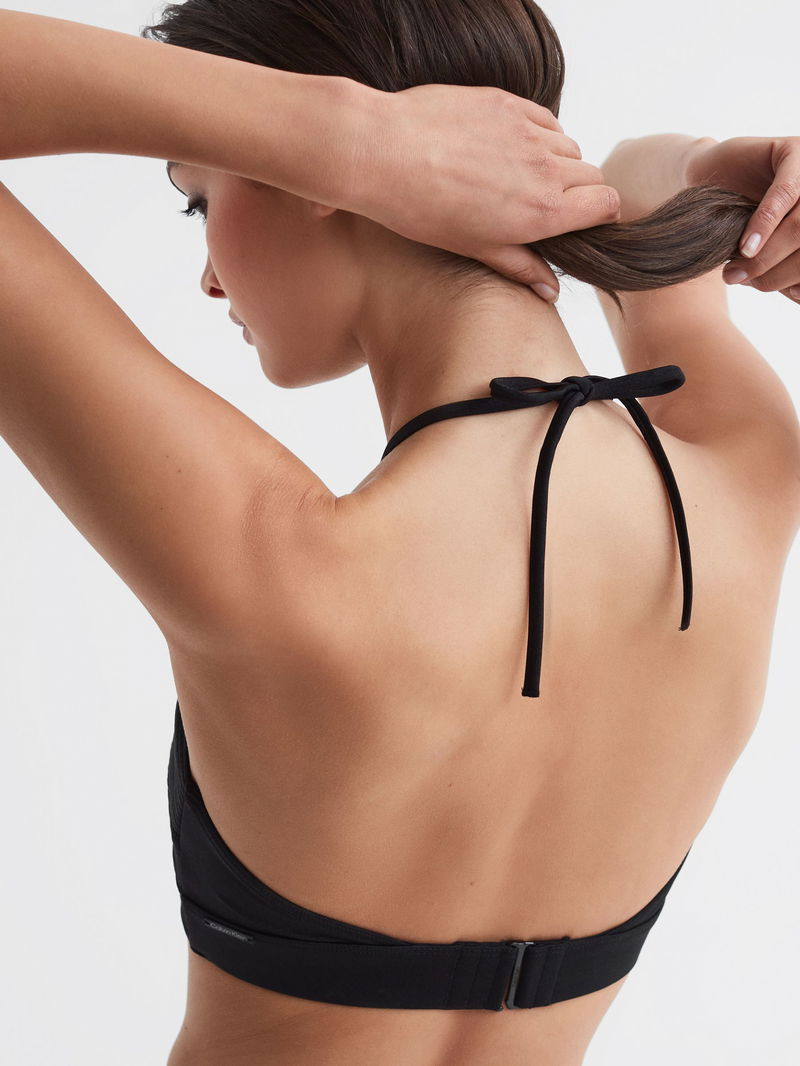 Calvin Klein Underwear, curated by Reiss, is a collection of lingerie designed to elevate the underwear drawer and work perfectly beneath your existing Reiss garments. Feel comfortable from the first layer. Handpicked from the brand’s Structured collection, this black Bralette Bikini Top is an alluring, corset-inspired shape. It’s fitted with moulded, quilted cups and designed with a front cut-out, complementing the chest. Customise the wear with the removable halterneck fastening and pair it with the matching bottoms.