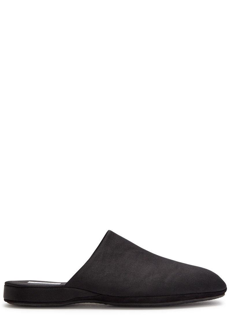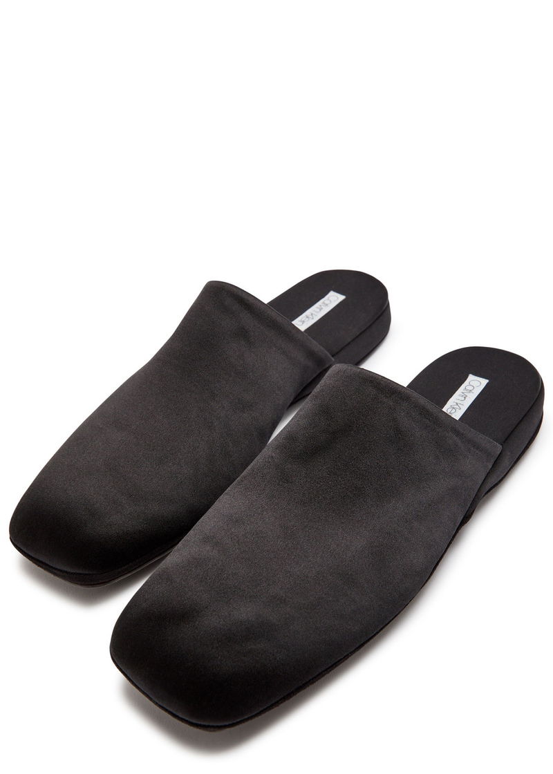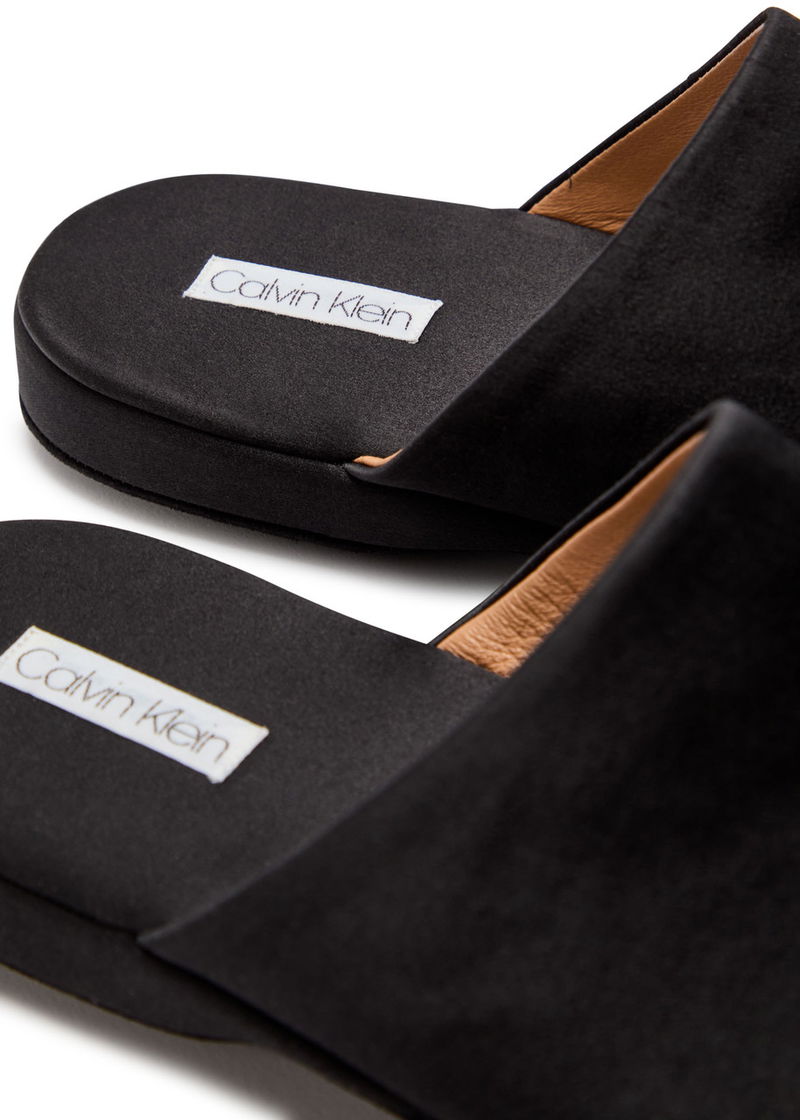 Calvin Klein Collection satin slippers. Leather lining, rubber sole, square toe.