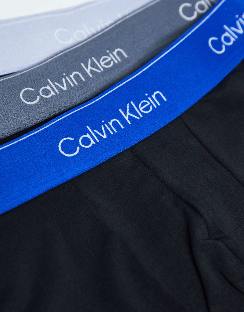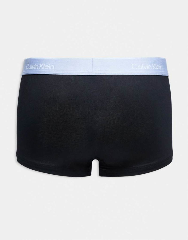 Icon Cotton Stretch 3 Pack Low Rise Trunks In Black With Blue/grey Waistbands