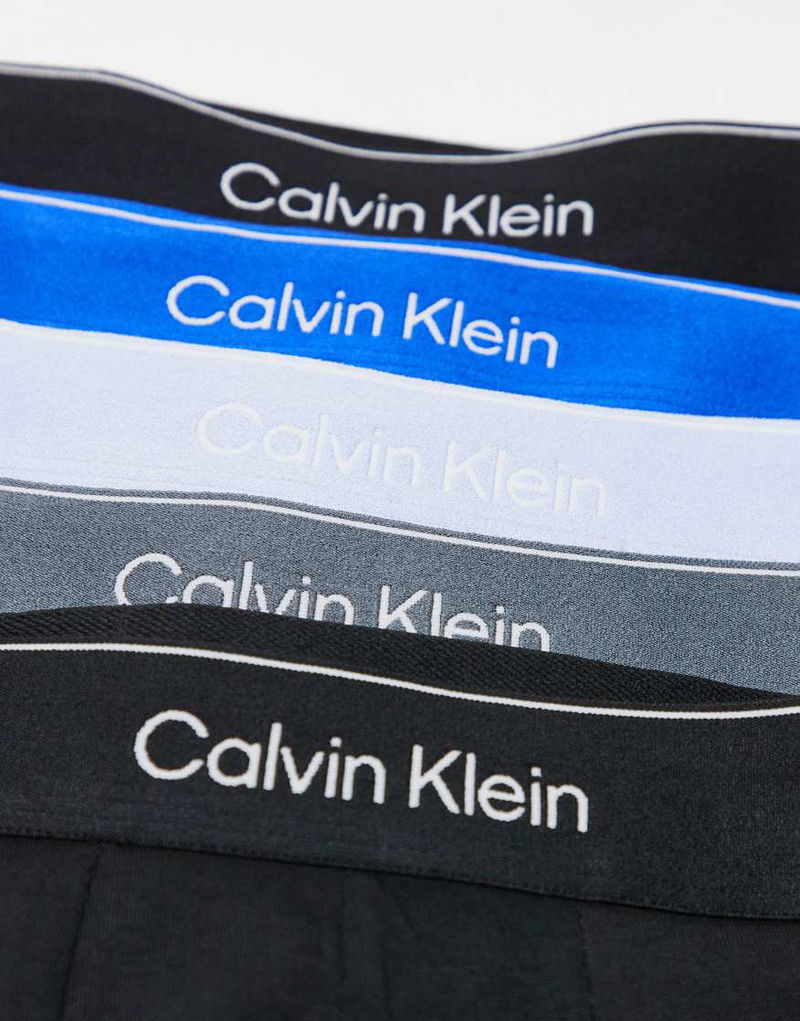 Icon Cotton Stretch 5 Pack Boxer Briefs In Black With Blue/grey Waistbands