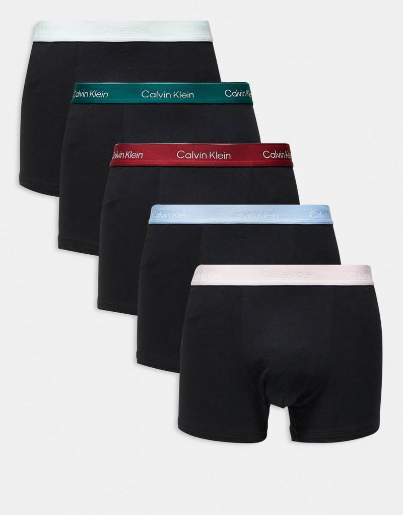 Icon Cotton Stretch 5 Pack Relaxed Trunks In Black With Coloured Waistbands
