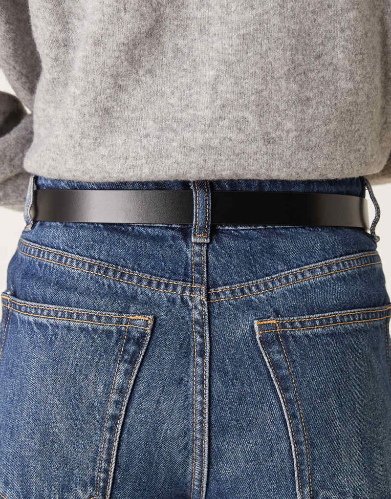 Jeans 100% Leather 25mm Pebbke Buckle Belt In Black