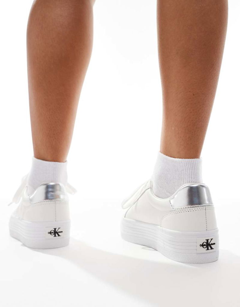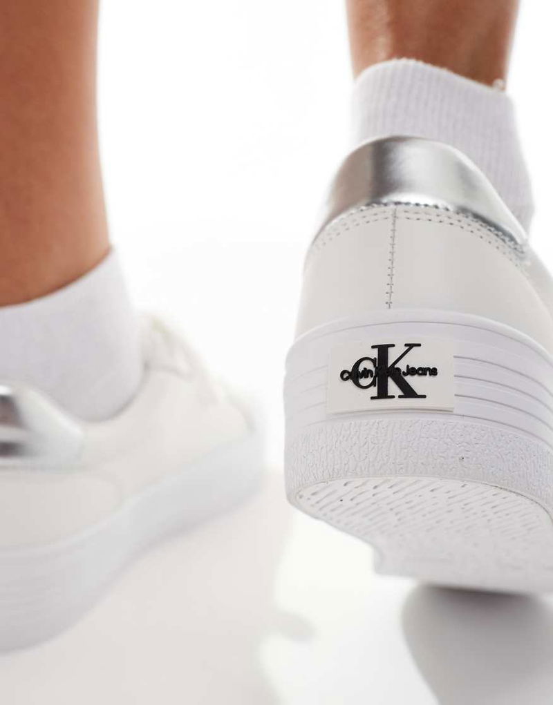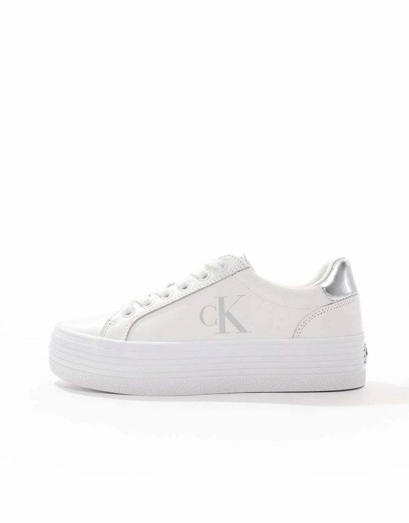 Jeans Bold Flatform Lace Up Trainers In White & Silver